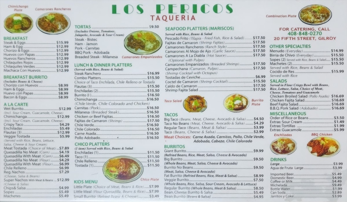 Nestled in the heart of Gilroy, California, Los Pericos Taqueria stands out as a vibrant, family-owned gem that has earned a loyal following among locals and travelers alike. With a menu that boasts classic Mexican staples—from hearty breakfast burritos to rich cheese enchiladas and fiery Camerones A La Diabla—this spot captures authentic flavors rooted in tradition and home-style cooking.